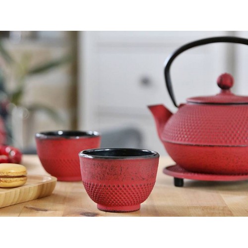 Raudonos spalvos japoniško stiliaus ketaus arbatinukas. Suteikite savo malonaus malonaus jaukumo su dailiu japoniško stiliaus arbatinuku. Ir mėgaukitė...