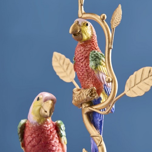Žvakidė ant kojelės su papūgom, įvairių sp., 33 cm